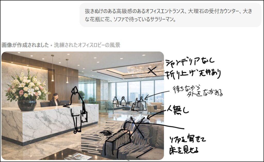 対策:必ず参考画像を添付し、「このような雰囲気で」と具体的に伝えましょう。