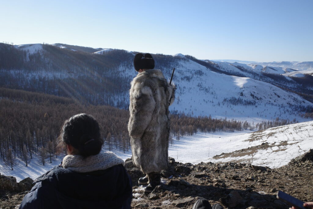 遅めの朝ご飯を食べた後、最後のオオカミ探しにトライ。この日の作戦は6日目と同様で、私たちは山の岩場に身を潜め、向かい側の山の奥から馬に乗った猟師さんが爆竹や声で音を出しながらオオカミをこちら側に追い立てるというものでした。