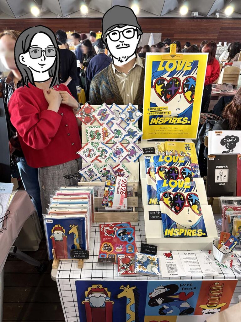 グラフィックデザイナー出身なので、カラフルで目を引くブースは光輝いていました。
