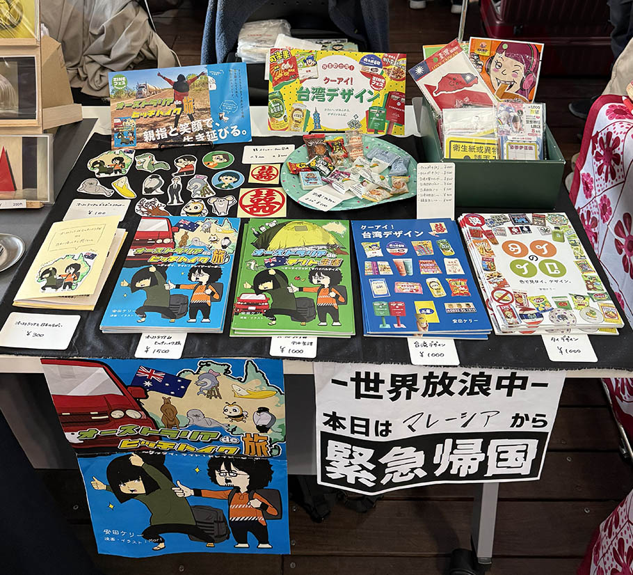 常に世界放浪しているという安田ケリーさんは、その他にもテント生活や台湾のデザインをまとめたZINEも出品されていました。